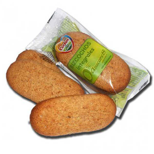 Ingredientes: Harina de trigo, edulcorante (maltitol), estabilizantes (E420ii, glicerina), aceite vegetal (girasol, soja) en proporción variable, huevo, salvado de trigo (mín. 4%), leche en polvo (mín. 0,9%), oligofructosa, gasificantes (bicarbonato sóldico, E450i, bicarbonato amónico), aromas, sal, suero de leche, conservadores (E282, E202) y espesante (E415).